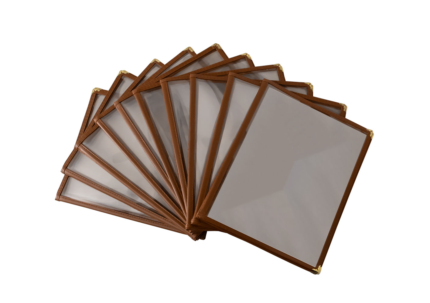 The menu booklets feature clear vinyl panels and designed to allow you to replace printed menus. These booklets come with crimped metal reinforcements to ensure longevity.