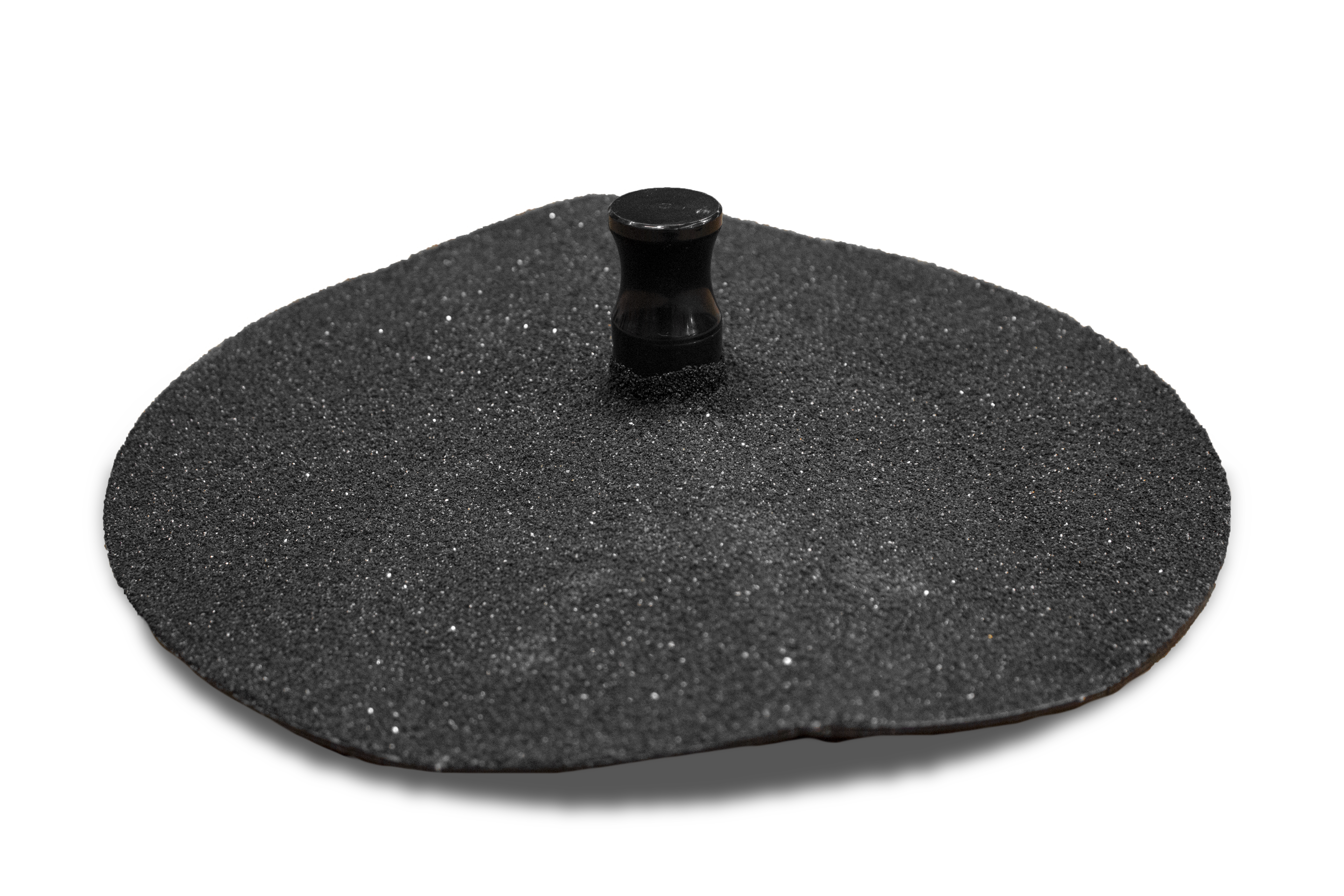 The fine granular coating on the onion peeling plate is designed to gently remove the outer layers of the onion.