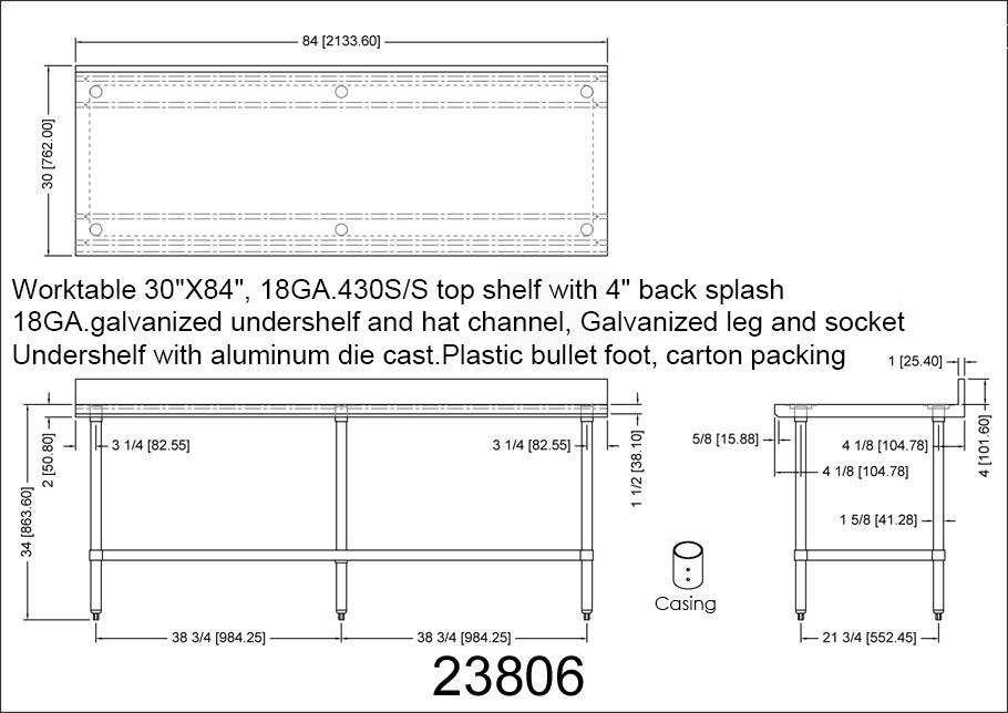 DIMENSIONS (DWH): 30″ x 84″ x 34″ (38″ with backsplash)