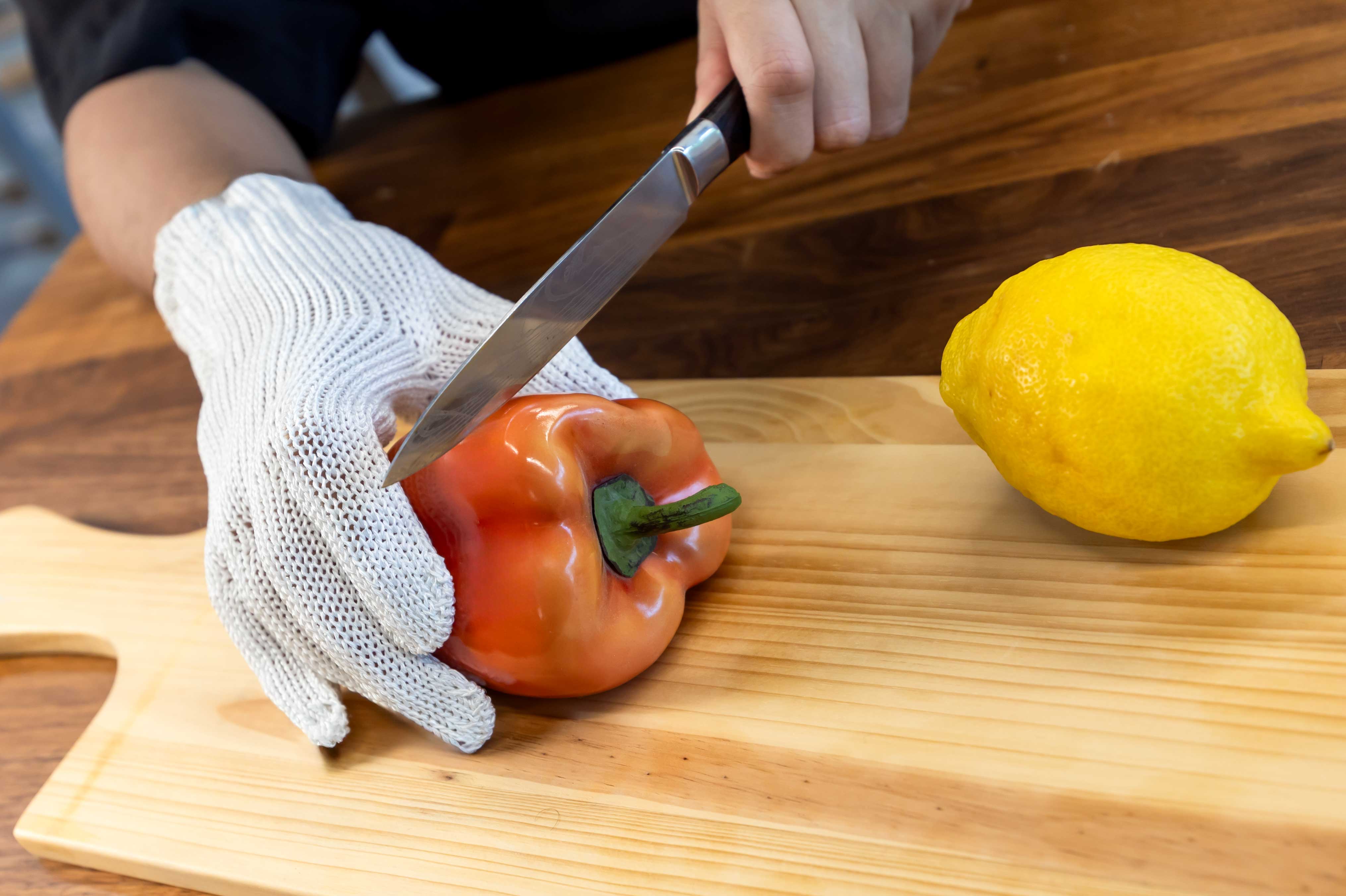 ‘- ANSI Level A8 Cut Resistance Protection – 100% food grade – Ambidextrous – Machine washable – Designed for a mandolin slicer – Protect your hands from 99% injury