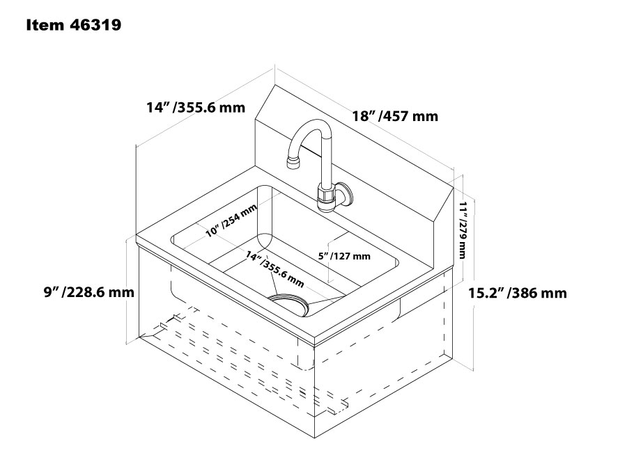 Hand sink with faucet. Made of high quality 18 gauge 304 stainless steel.