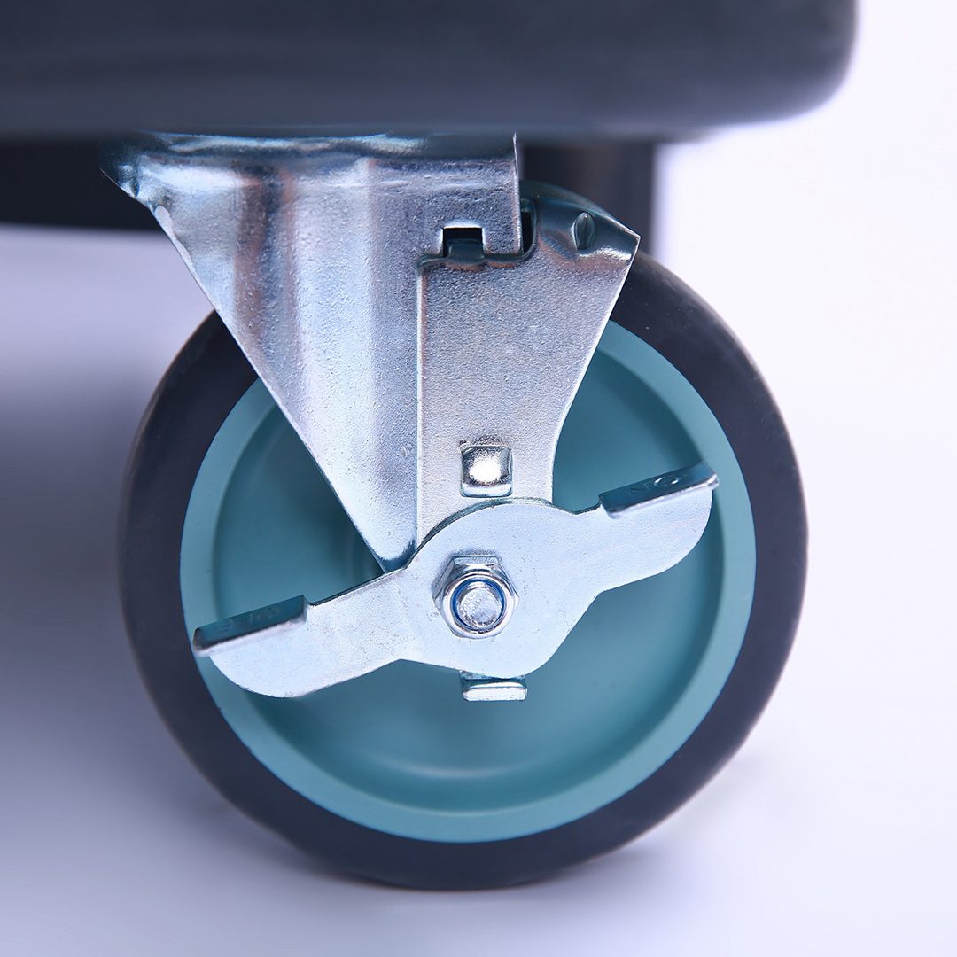 Recessed handle on front end for convenient moving or lifting. This unit also features This unit also features 2 front wheels with brakes with 2 larger rear wheels for easy mobility.