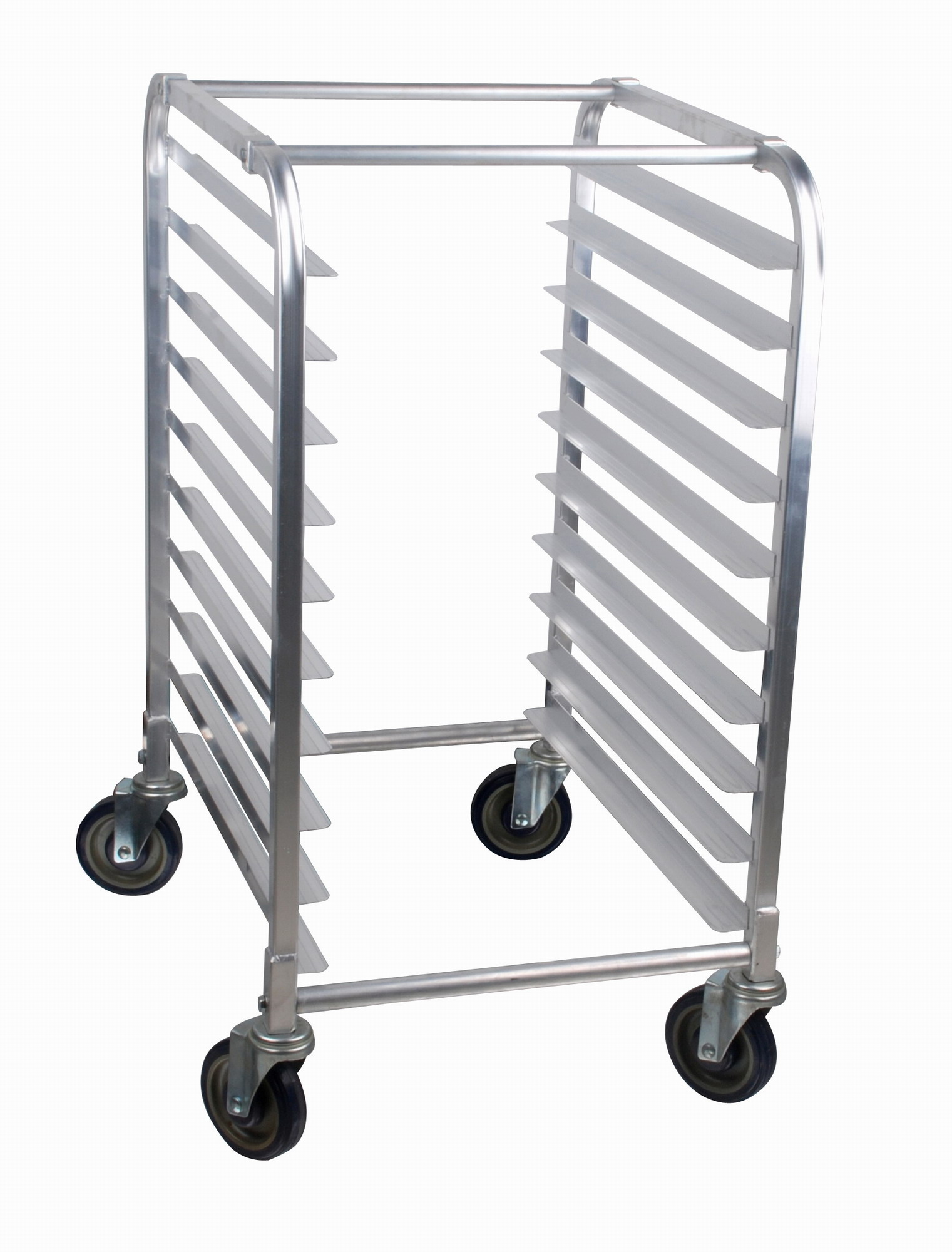 Mobile Steam Table Pan Rack, 10 Slides with 3″ Spacing, Curved Top, Aluminum