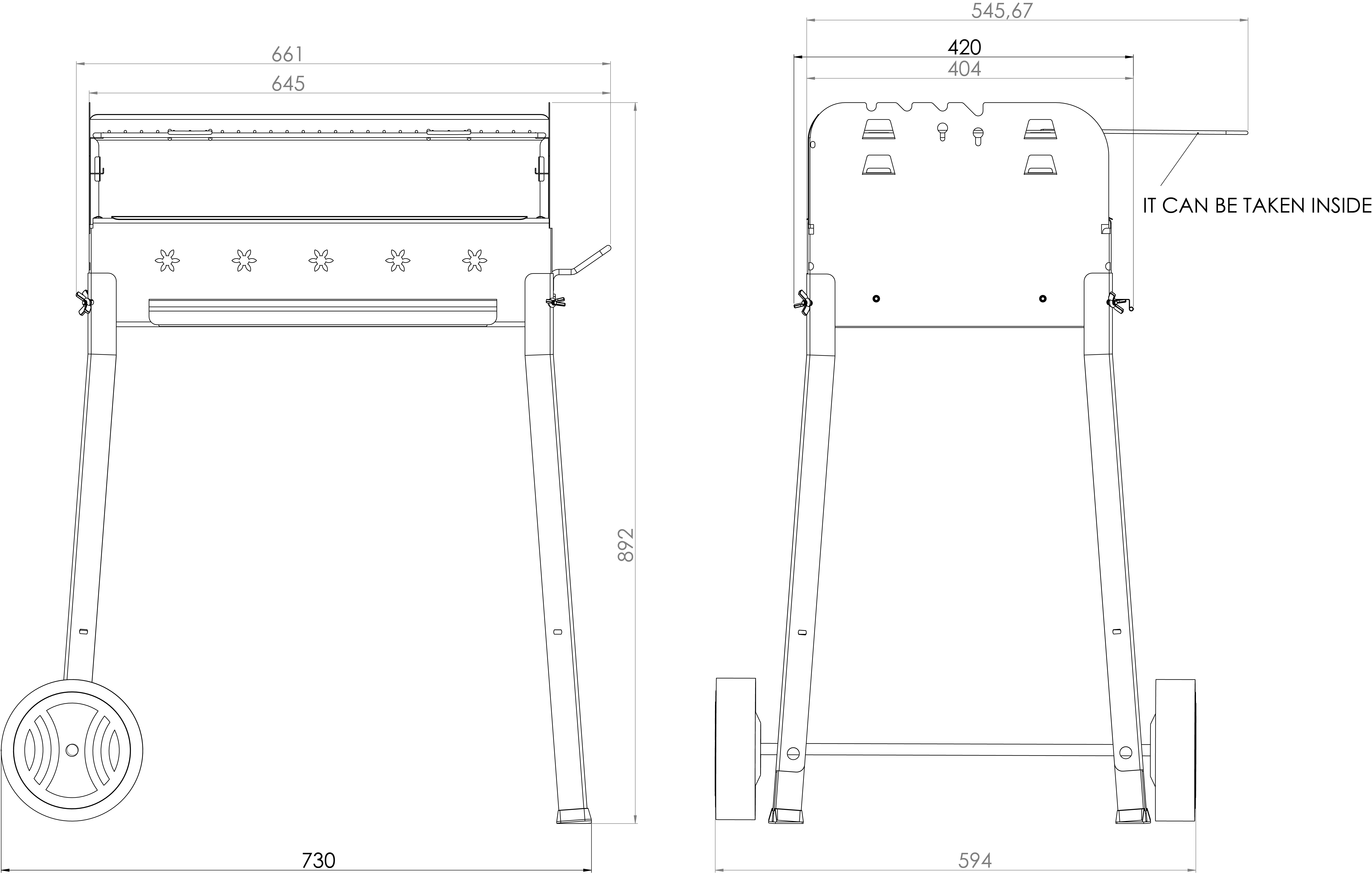 Painted Steel Charcoal BBQ Grill Stainless Steel Brazier and Panel