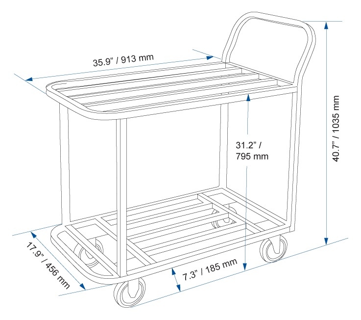 Omcan's Welded Stock Cart is sturdily constructed to endure tough everyday handling. Finished for easy cleaning. Great for supermarkets and various foods service operations. Fully assembled. Shipped on Pallet.