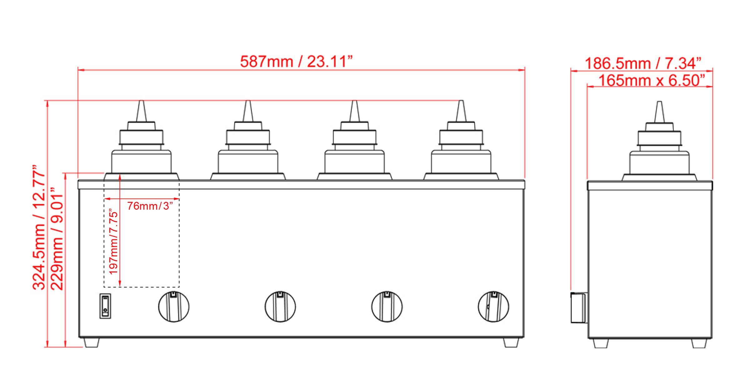 DIMENSIONS: 7.34″ x 23.11″ x 12.77″ / 186.5mm x 587mm x 324.5mm