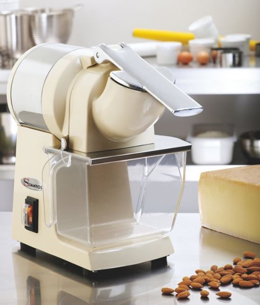 This Santos Cheese Grater 02 is powerful and sturdy. Comes with 1 standard disc with 3mm holes. Ideal for cheese shops, supermarkets, pizzerias, cake shops...This model facilitates cleaning and maintenance (removable housing and disc).