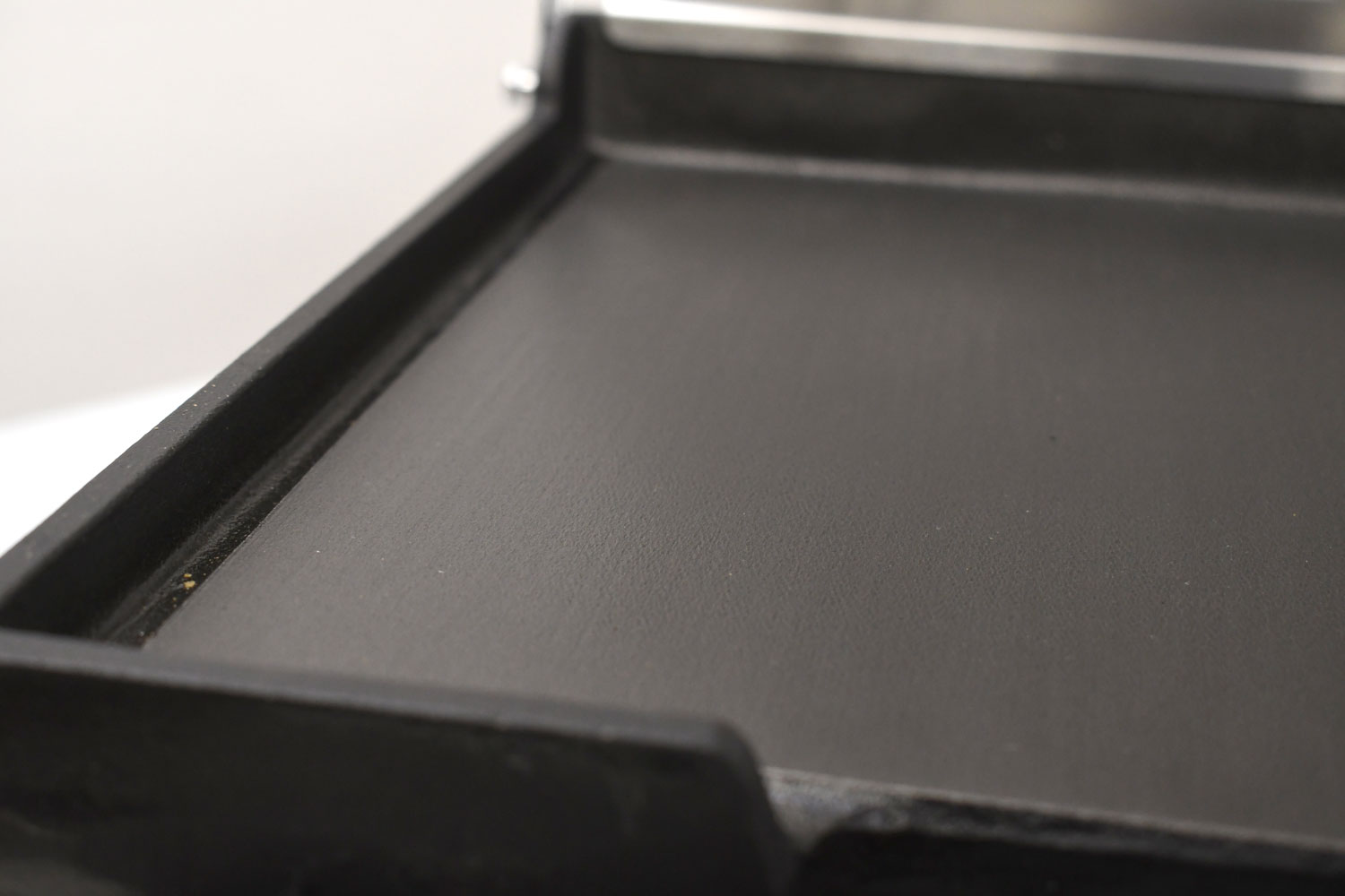 This Sandwich Grill has a stainless steel body with cast iron grilling surfaces for easy cleaning. Ideal for sandwiches, burger, quesadillas, panini, foccacia, and pita sandwiches.