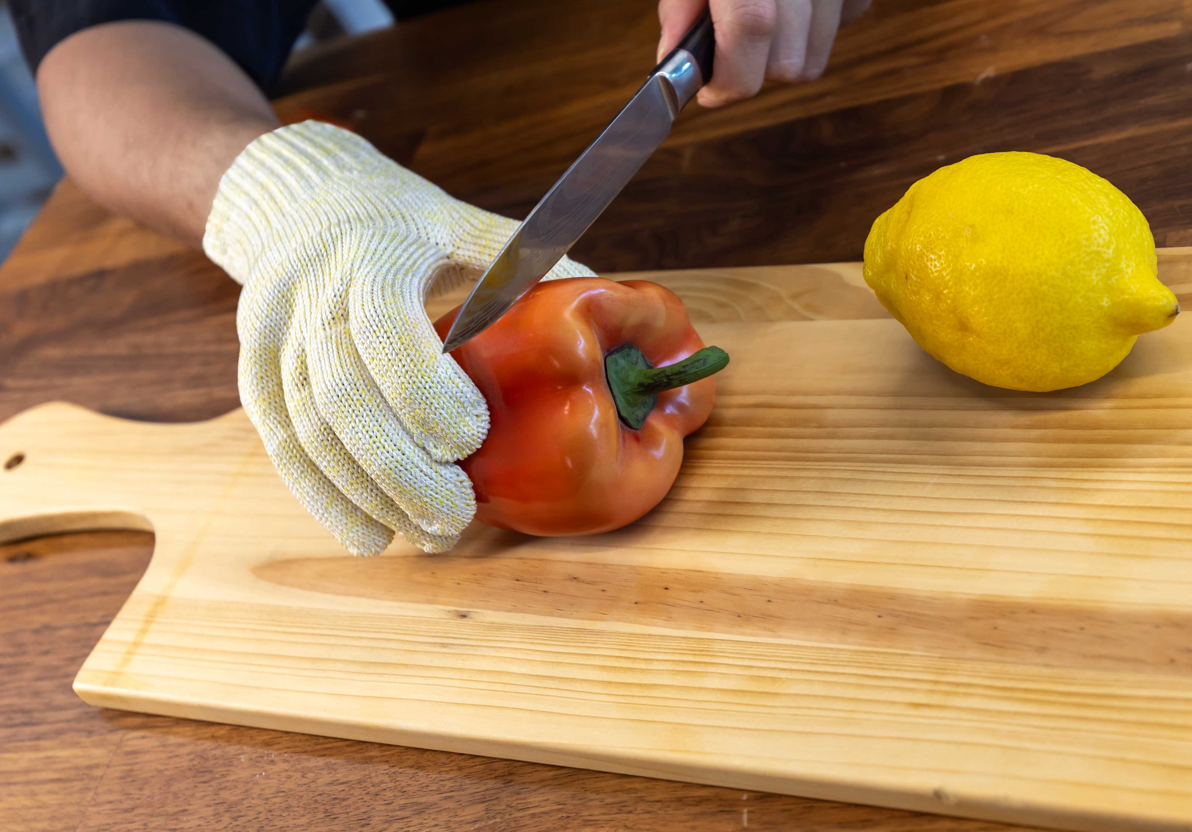 ‘- ANSI Level A8 Cut Resistance Protection – 100% food grade – Ambidextrous – Machine washable – Designed for a mandolin slicer – Protect your hands from 99% injury