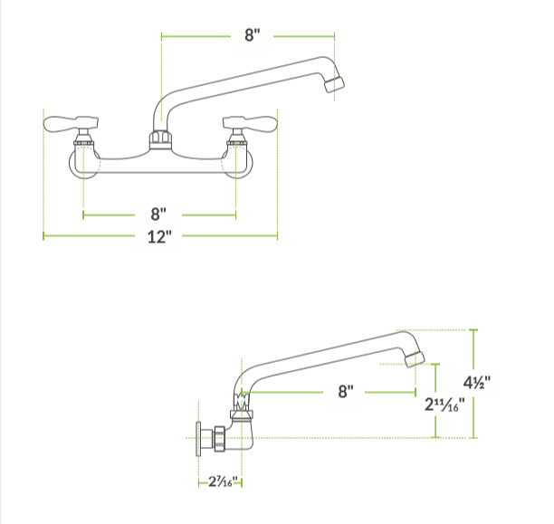8″ centers, swing nozzle