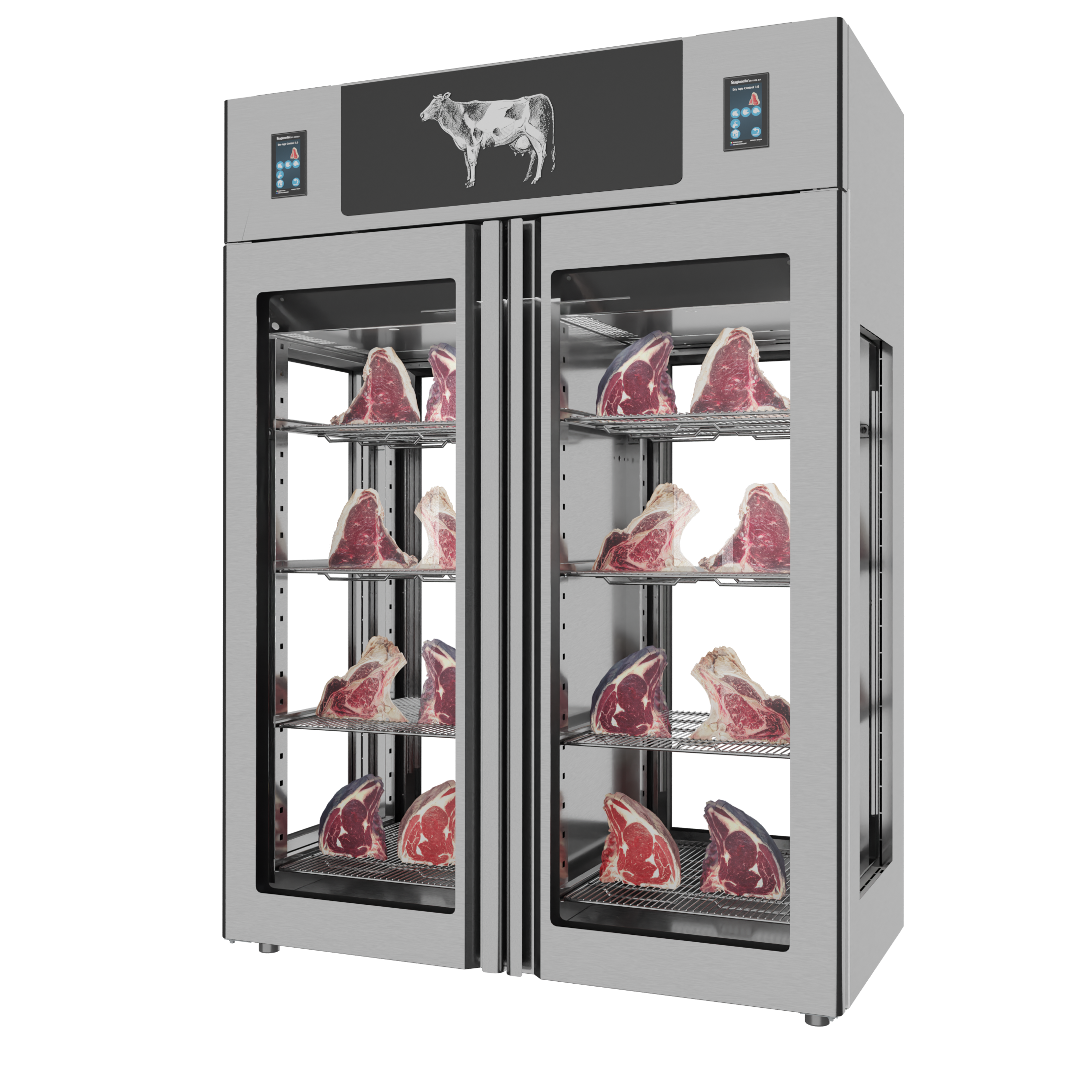 Stagionello® Dry Age 3.0 TWIN 1400 Liter, 150 Kg + 150 Kg Dry Aging Cabinet with Humidity Management, 4-Glass View – 220-240V, 1Ph, 548W