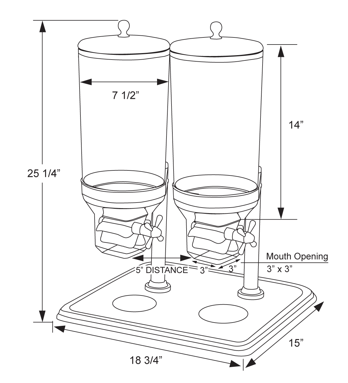 These dispensers are great solutions for to serve trail mix, candy, or cereals for your customers. The high quality materials keep the dispensers robust and solid for day to day operations. The turn-style dispensing system knob ensures measured amount of portions for each turn.