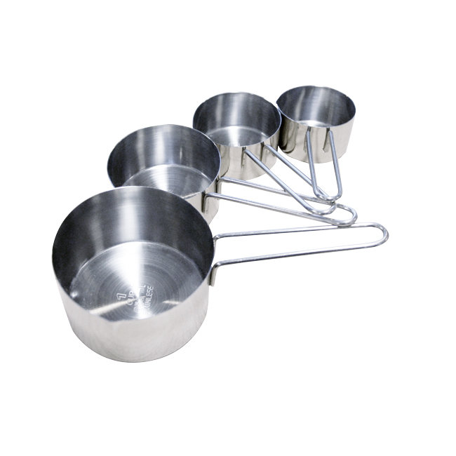 Sizes are: 1/4 cup (60 mL), 1/3 cup (80 mL), 1/2 cup (125 mL), 1 cup (250 mL)