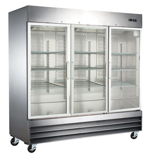 81″ Stainless Steel Glass Door Reach-In Refrigerator, 72 cu.ft. (2,024 L) – 115 V, 3/4 HP