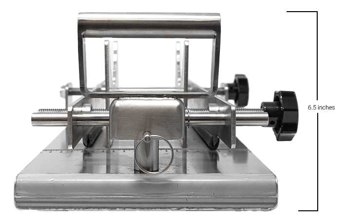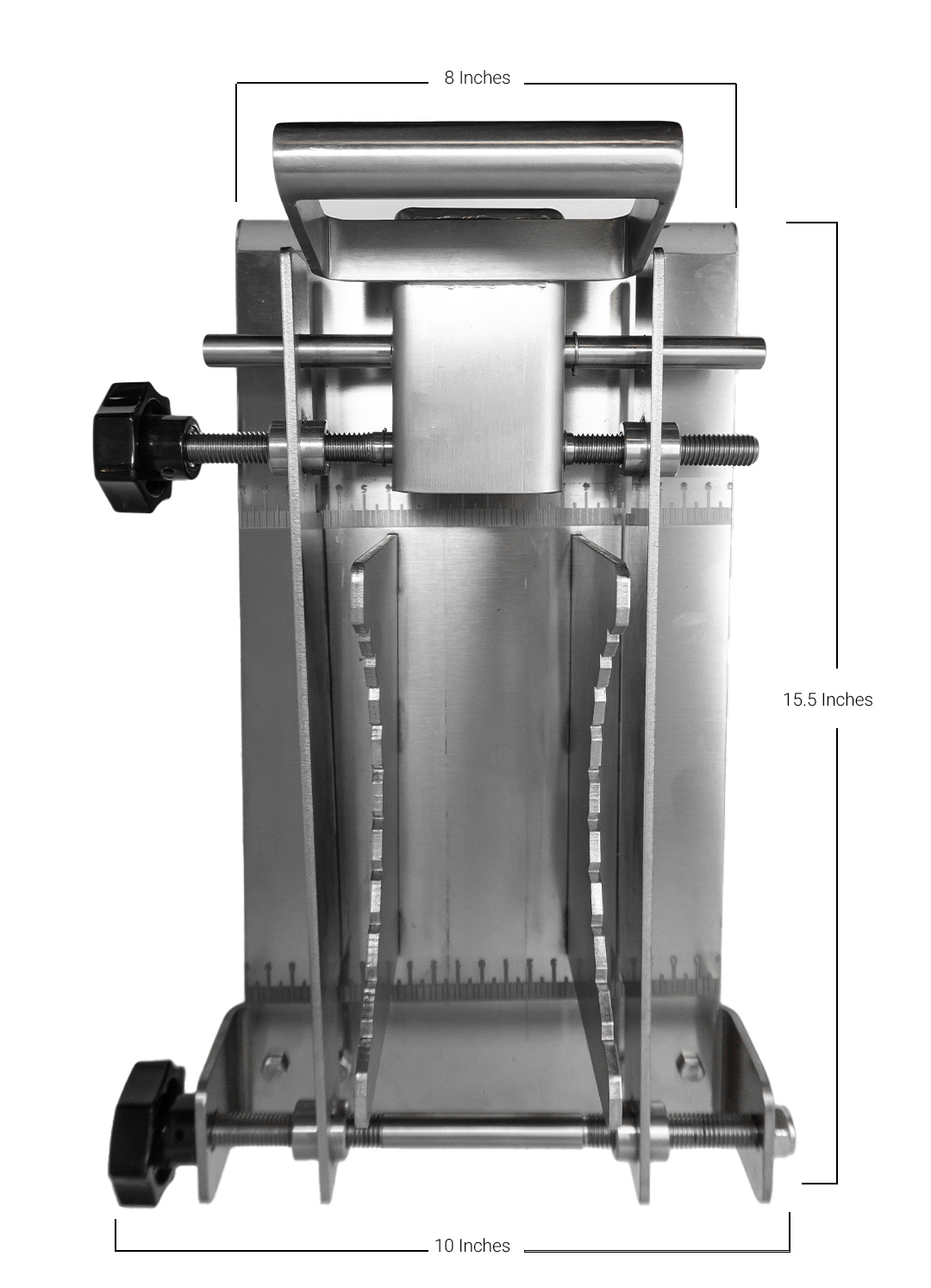 The manual pineapple cutter can handle different sizes of pineapples by adjusting the gap between the blades.