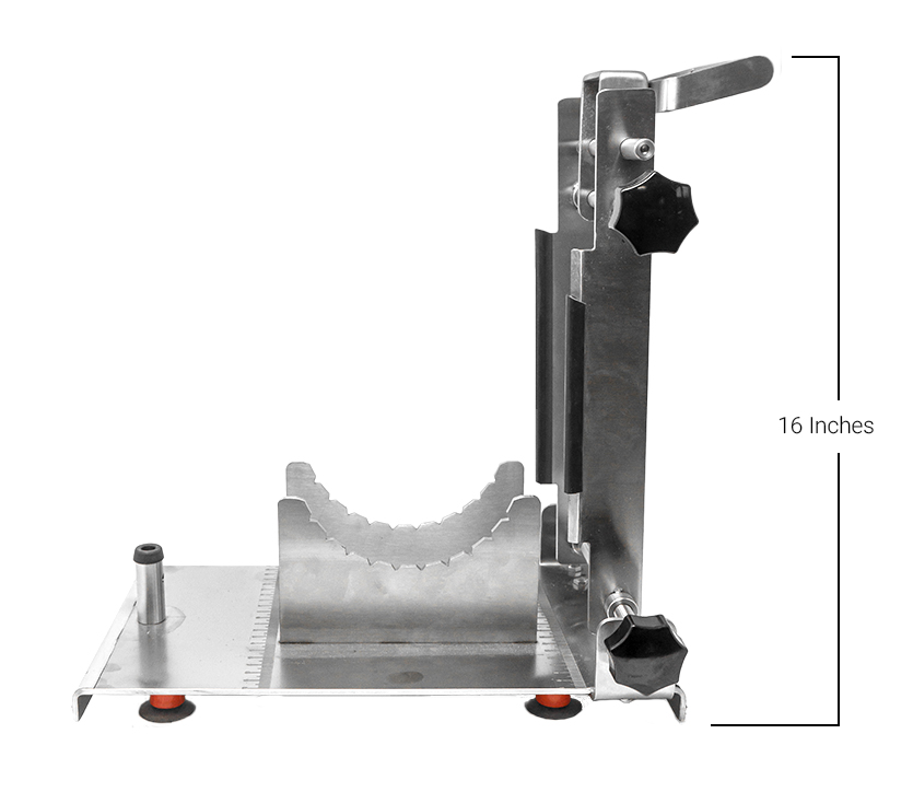Omcan's Tabletop Stainless Steel Pineapple Guillotine Manual Cutting Machine is a manual cutter that can cut off the top and bottom of fresh pineapples in one swift motion with minimal waste and effort. This way, the pineapple is ready for peeling or slicing into pieces.