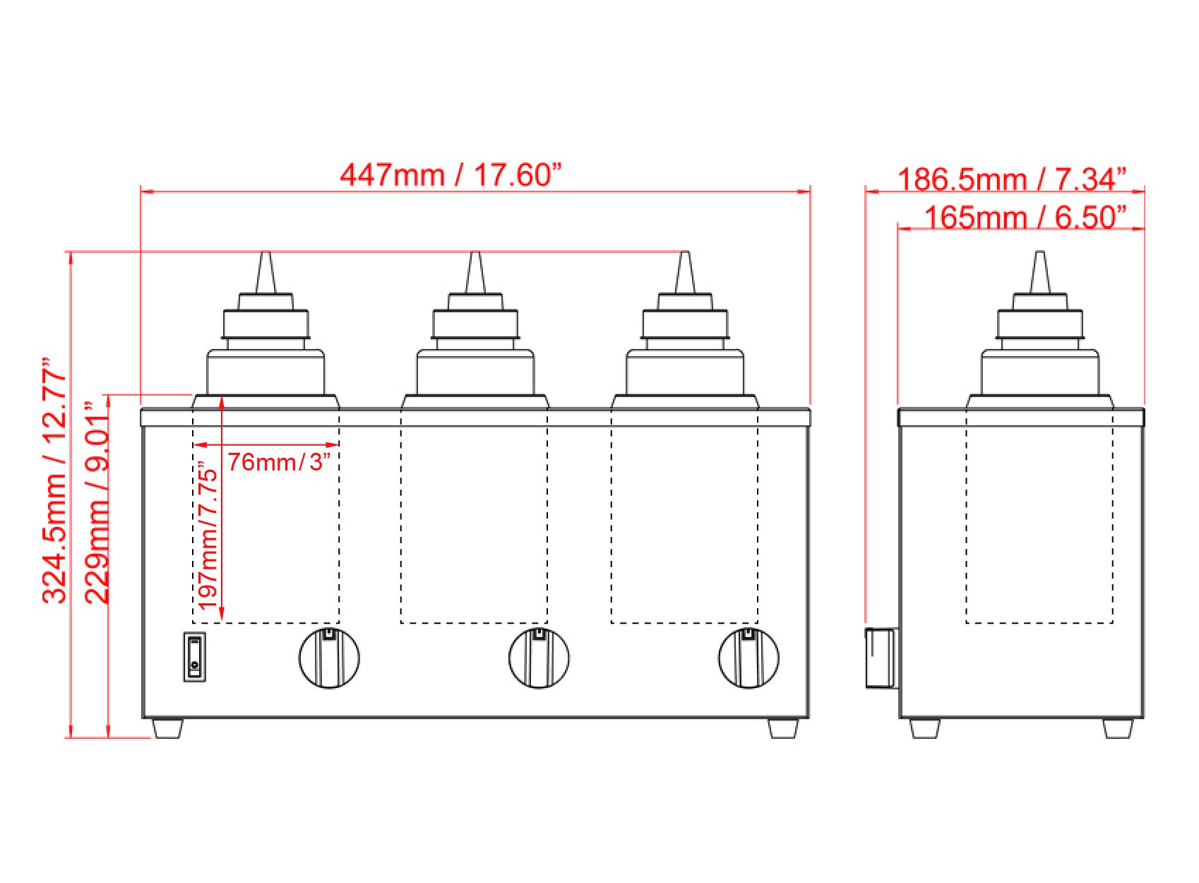 DIMENSIONS: 7.34″ x 17.60″ x 12.77″ / 167mm x 186.5mm x 324.3mm